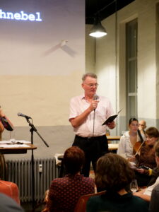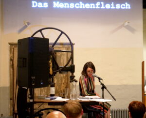 - Kathrin Assauer hält einen poetischen Vortrag über das Erotische im Roman Das Menschenfleisch von Marcel Beyer.