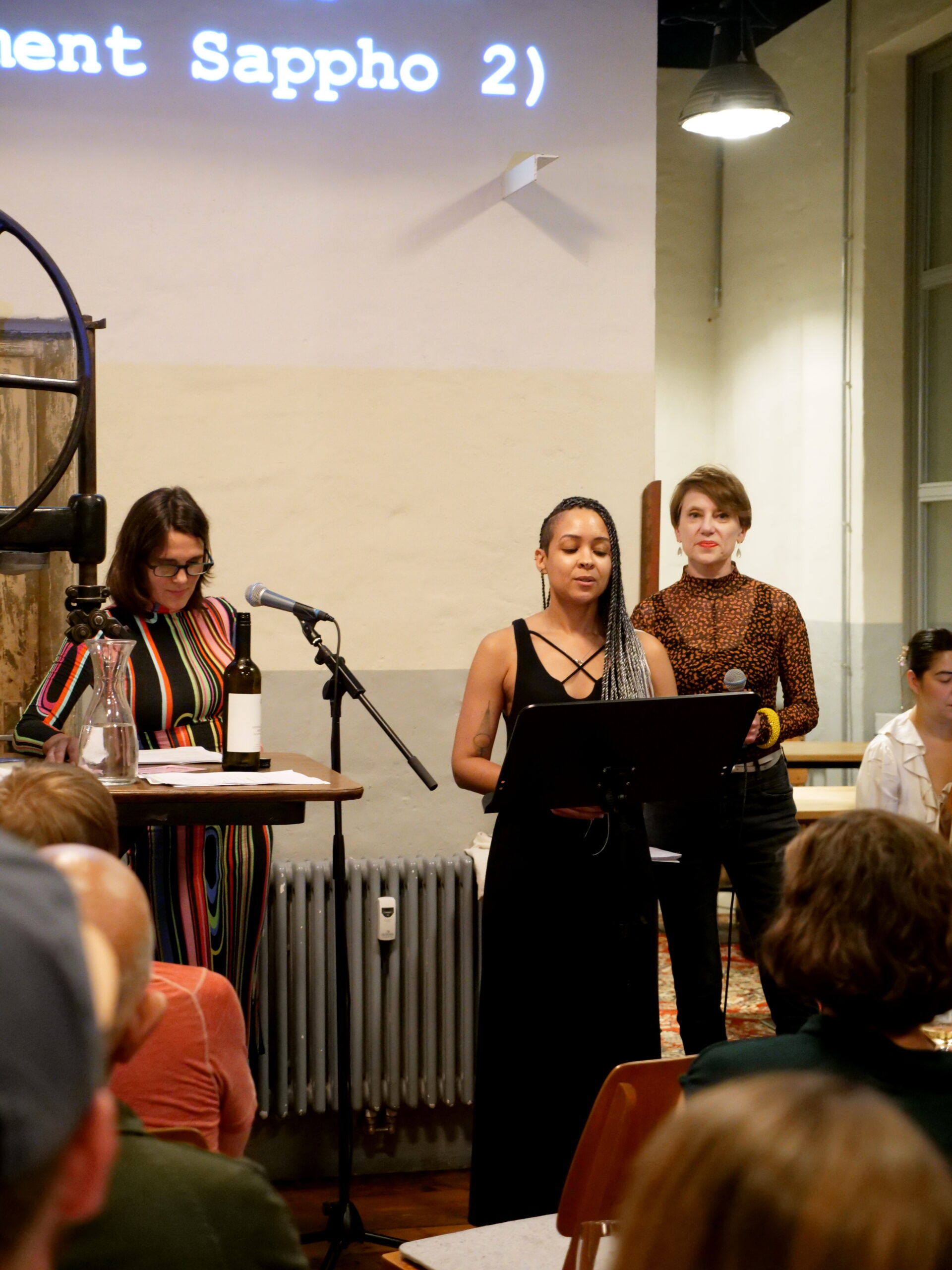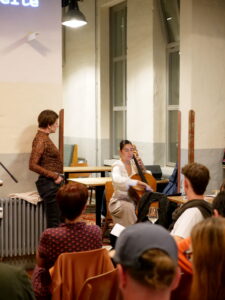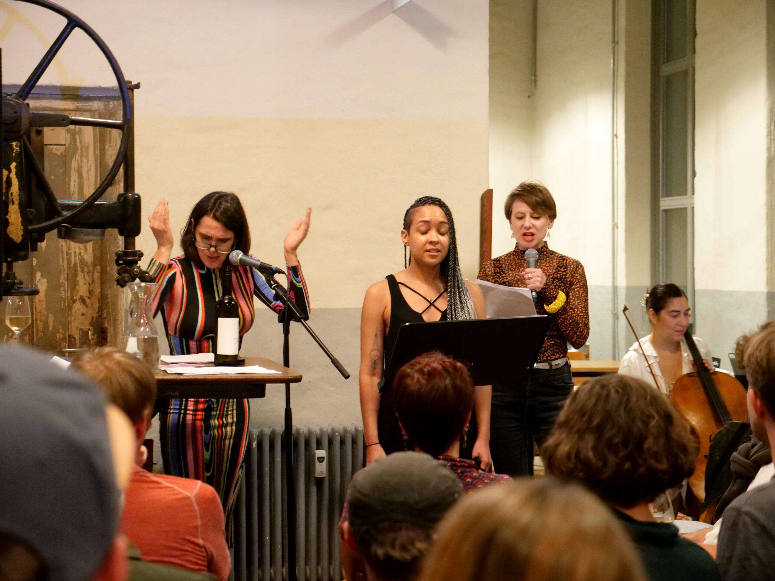 Kathrin Assauer und Silke Tobeler führten durch den Abend, kommentierten, performten und rahmten die Lesung mit Wortlust & Klangrausch: